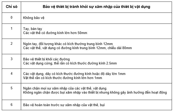 - Chữ số thứ nhất được ký hiệu mức độ bảo vệ chống bụi xâm nhập vào thiết bị