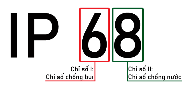 - Chỉ số IP thể hiện khả năng bảo vệ thiết bị khỏi bụi và nước.